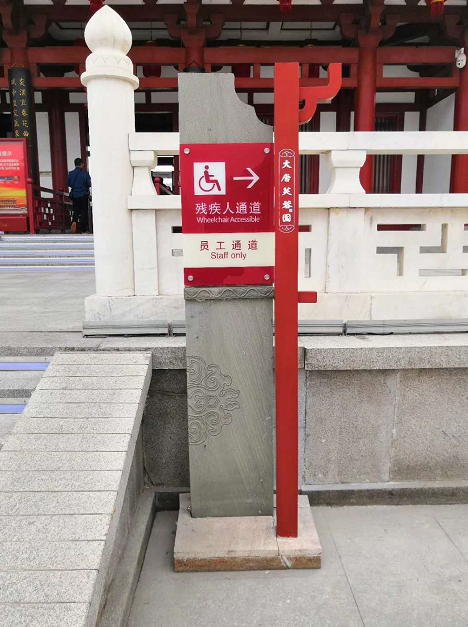 國家5A級旅游景區(qū)各種引導(dǎo)標(biāo)識(包括導(dǎo)游全景圖、導(dǎo)覽圖、標(biāo)識牌、景物介紹牌等觀景設(shè)施、路標(biāo)指示、宣傳資料)造型特色突出,藝術(shù)感和文化氣息濃厚,能烘托總體環(huán)境。標(biāo)識牌和景物介紹牌設(shè)置合理。