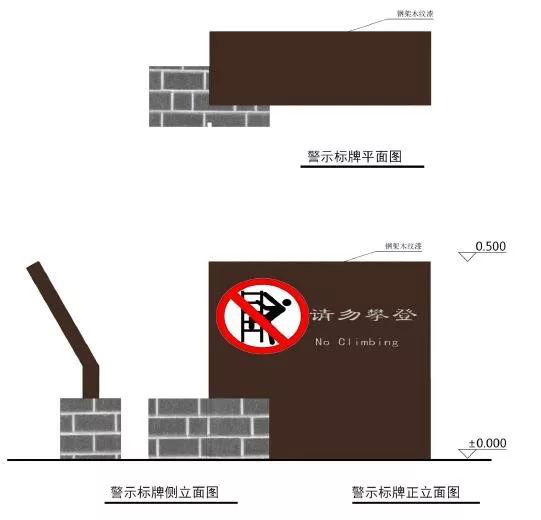 材料選擇:提示與警示標牌基座材料的選擇組要以灰磚為主,上部主要以防腐木為主體。